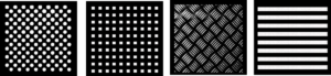 Plusieurs formes de dalles disponibles : rectangle, carré, cercle et demi-cercle.