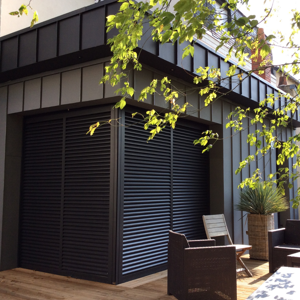 Les volets sont directement intégrés dans le profilé de la menuiserie permettant ainsi d’avoir des volets à galandage s’effaçant complétement une fois ouverts !