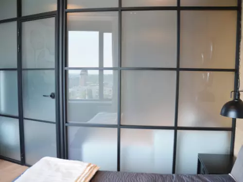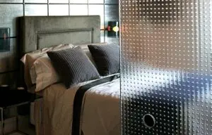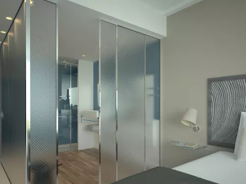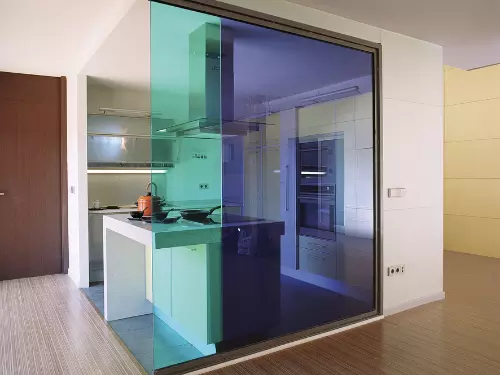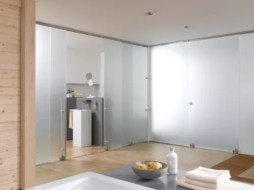 -  Des cloisons en verre imprimé pour un effet de texture unique pour personnaliser les espaces :