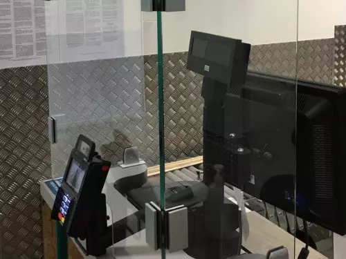 L’écran de protection en verre limite le risque de contamination au COVID-19.