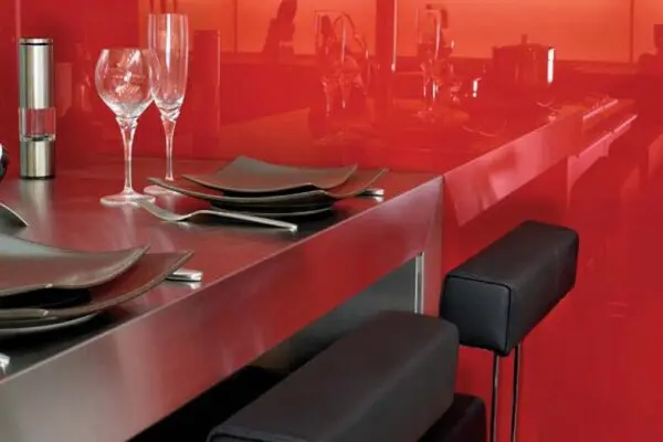 Grâce à ses nombreuses qualités et son esthétique moderne, le verre est également utilisé pour habiller les murs ou les meubles.