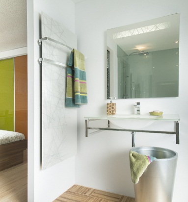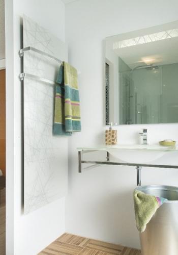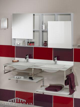 L’avantage de la solution avec simple ou double vasque en verre est de combiner le plateau et le lavabo en une seule pièce à vos mesures, avec la valeur ajoutée de son support pour serviettes intégré.