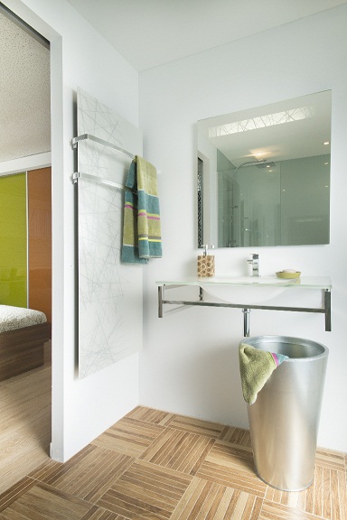 On ne s’imagine pas grelotter dans une salle de bains pour la bonne raison qu’on y vit partiellement dévêtu. La notion de confort et de chaleur est donc indispensable pour répondre à votre bien-être. Détendez vous, ici, c’est la règle, et en beauté, car c’est l’autre dimension de la salle de bains ! Pureté, hygiène et transparence sont les atouts du verre. Ajoutons l’inertie en matière de chauffage. Déclinés pour toutes les pièces de la maison, les radiateurs électriques en verre trouvent naturellement leur place dans la salle de bains, qu’il s’agisse de modèles simples ou avec l’option sèche-serviettes.